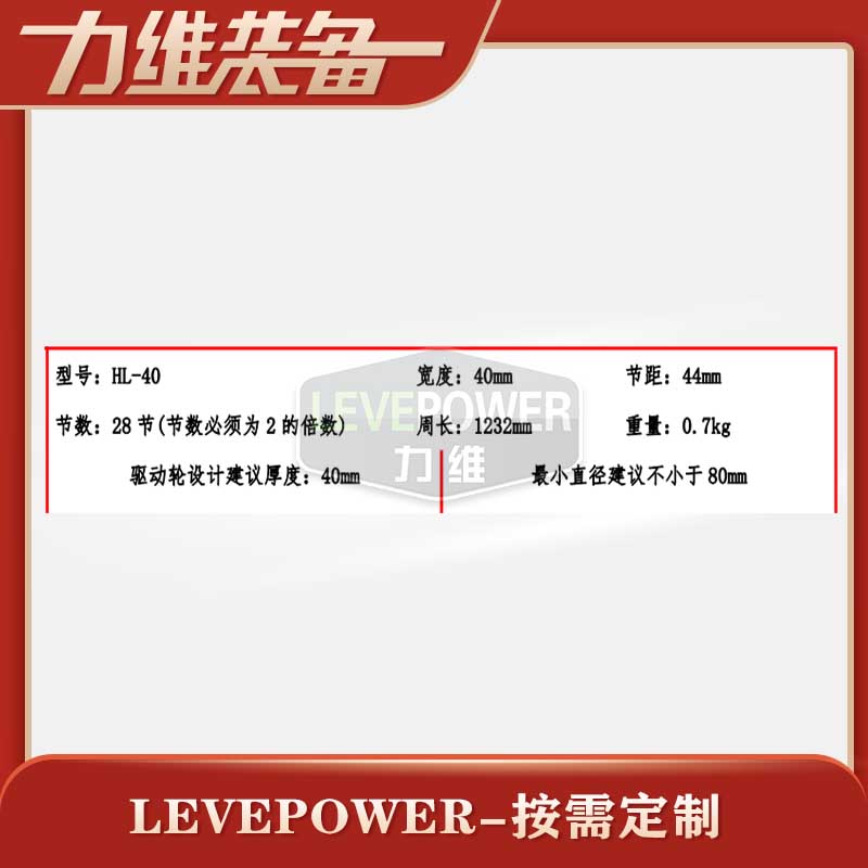 此履帶為撥齒履帶,外花紋采用方塊矮齒緊密設計,內齒采用節距適中的三角塊狀設計,帶體較厚,此款設計提高了履帶自身的載重能力,實現了在路面行駛非常平穩功能。