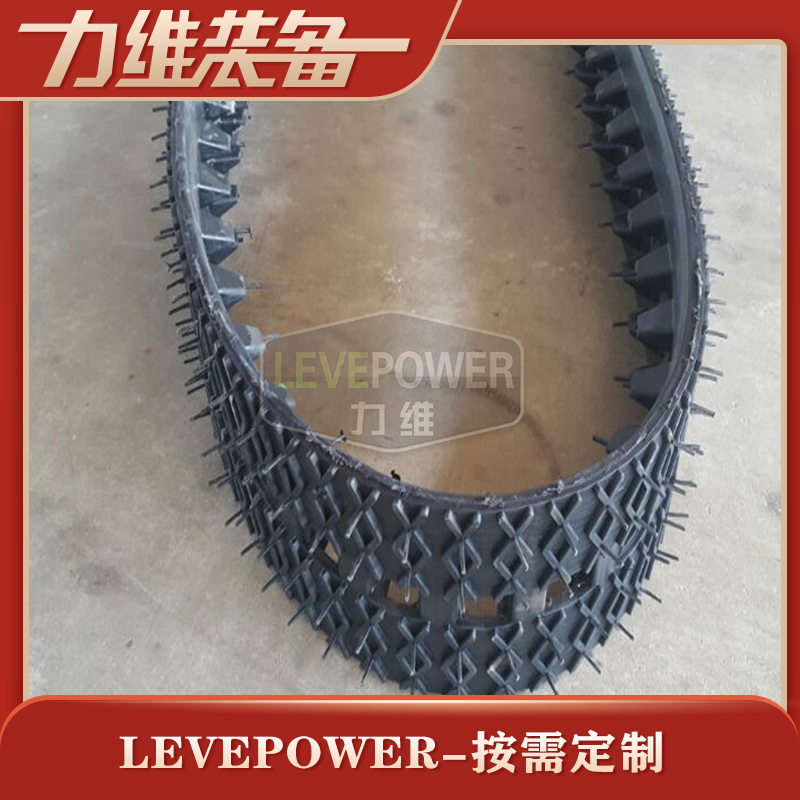 此產品采用納米復合橡膠,內置高強度纖維,內置高強鑄鋼金屬骨架,大大地控制了脫帶力,橡膠履帶底盤、履帶式運輸車裝上此款履帶可以應用于工廠,超市等多種條件下,受到廣泛南方北方客戶歡迎。