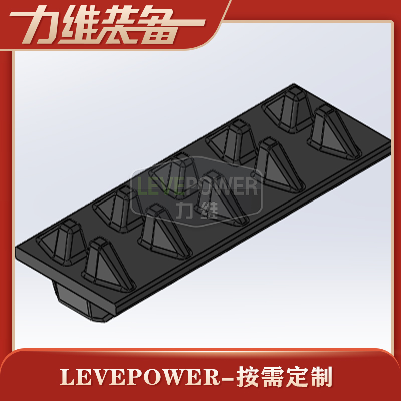 此款橡膠履帶外花紋采用較大塊狀外花紋設計,內齒設計為貼邊兩側大梯形角內齒,絕對不會出現脫帶問題。適合機器人底盤等機配套使用。