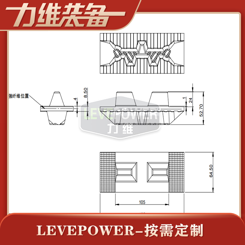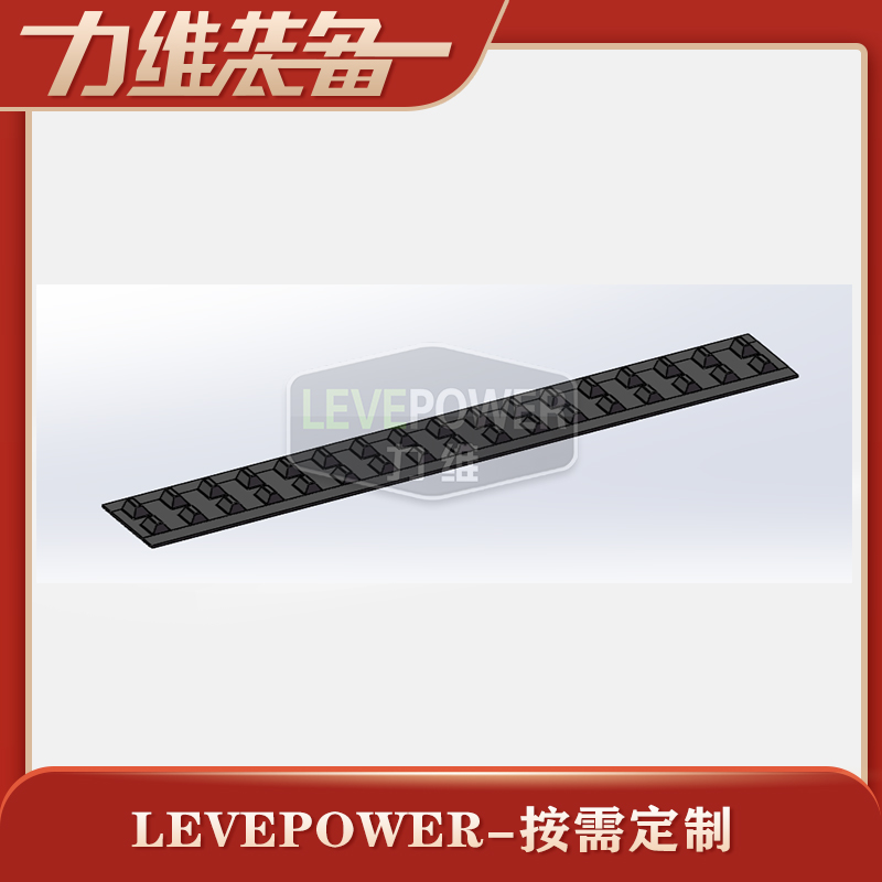 此款特種橡膠履帶外花紋采用不規則橫紋設計,內齒節距適中,采用高齒梯形兩側設計。此設計主要提高了履帶的抓地力,帶體設計很薄,適用于雪地等軟路面使用。