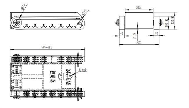 橡膠履帶底盤長(zhǎng)700mm左右,履帶底盤寬340mm左右,履帶底盤高110mm左右,整車采用6061鋁合金箱體焊接,材質(zhì)輕,耐腐濁,履帶車搭載24v200W直流永磁無刷電機(jī),渦輪蝸桿減速機(jī),動(dòng)力強(qiáng),體積小,防水性能好,越野性能強(qiáng),可用于管道清淤,偵查、巡檢等場(chǎng)景。